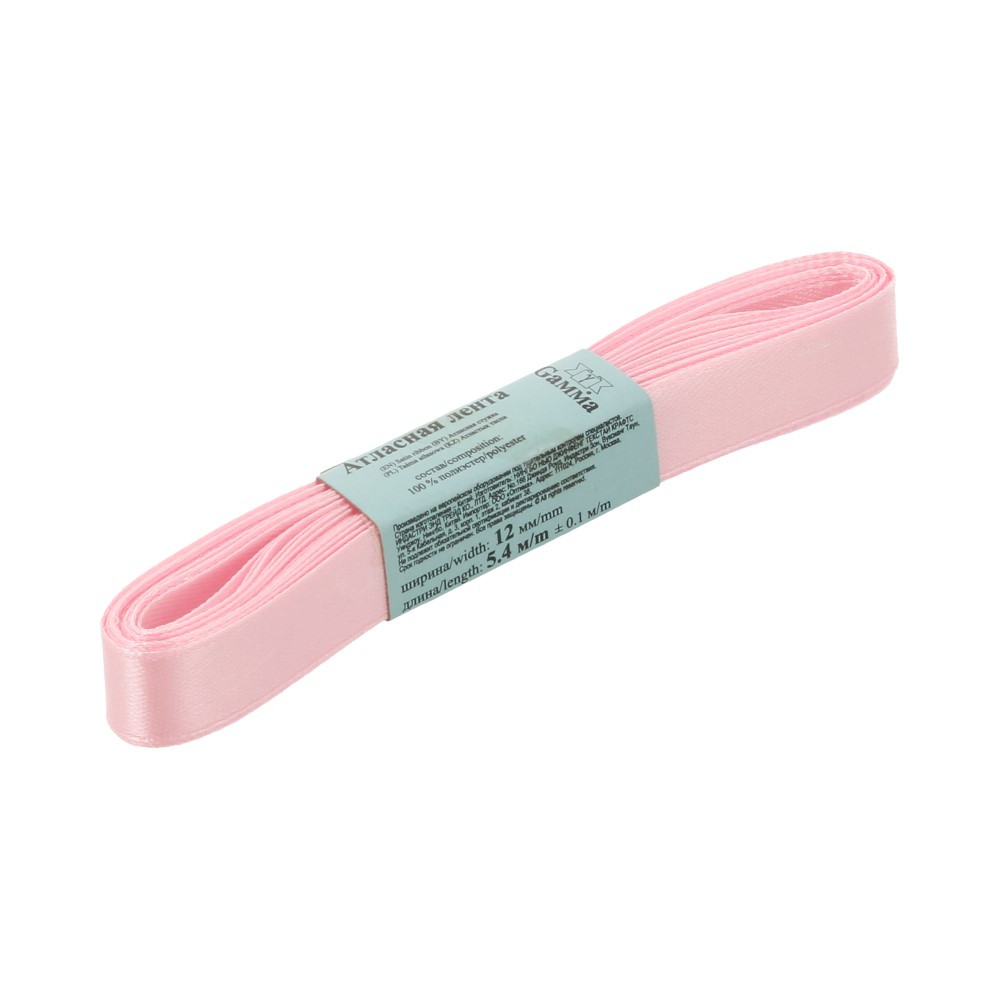 Лента атласная 12 мм ( 1/2 ") "Gamma" ФАСОВКА 5.4 м №110 розовый