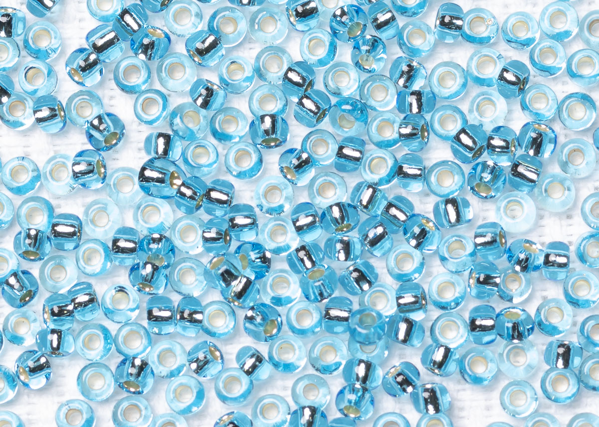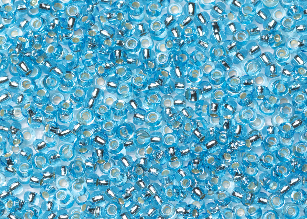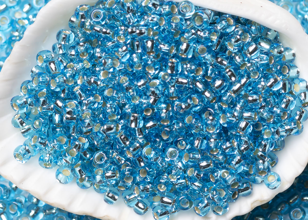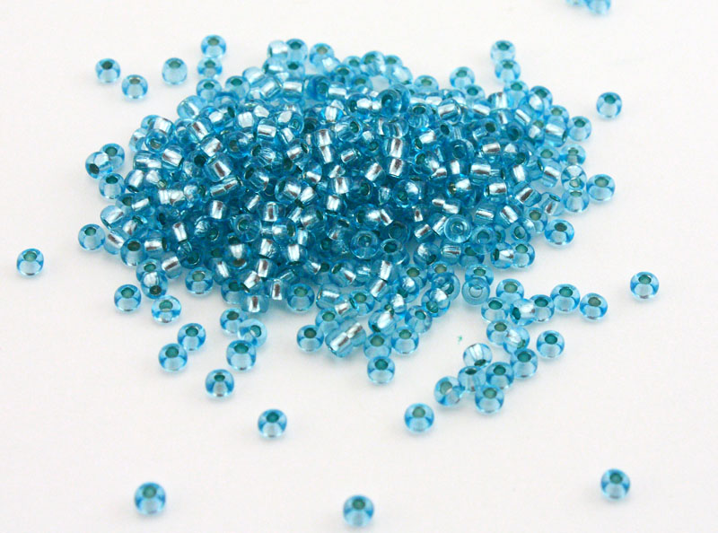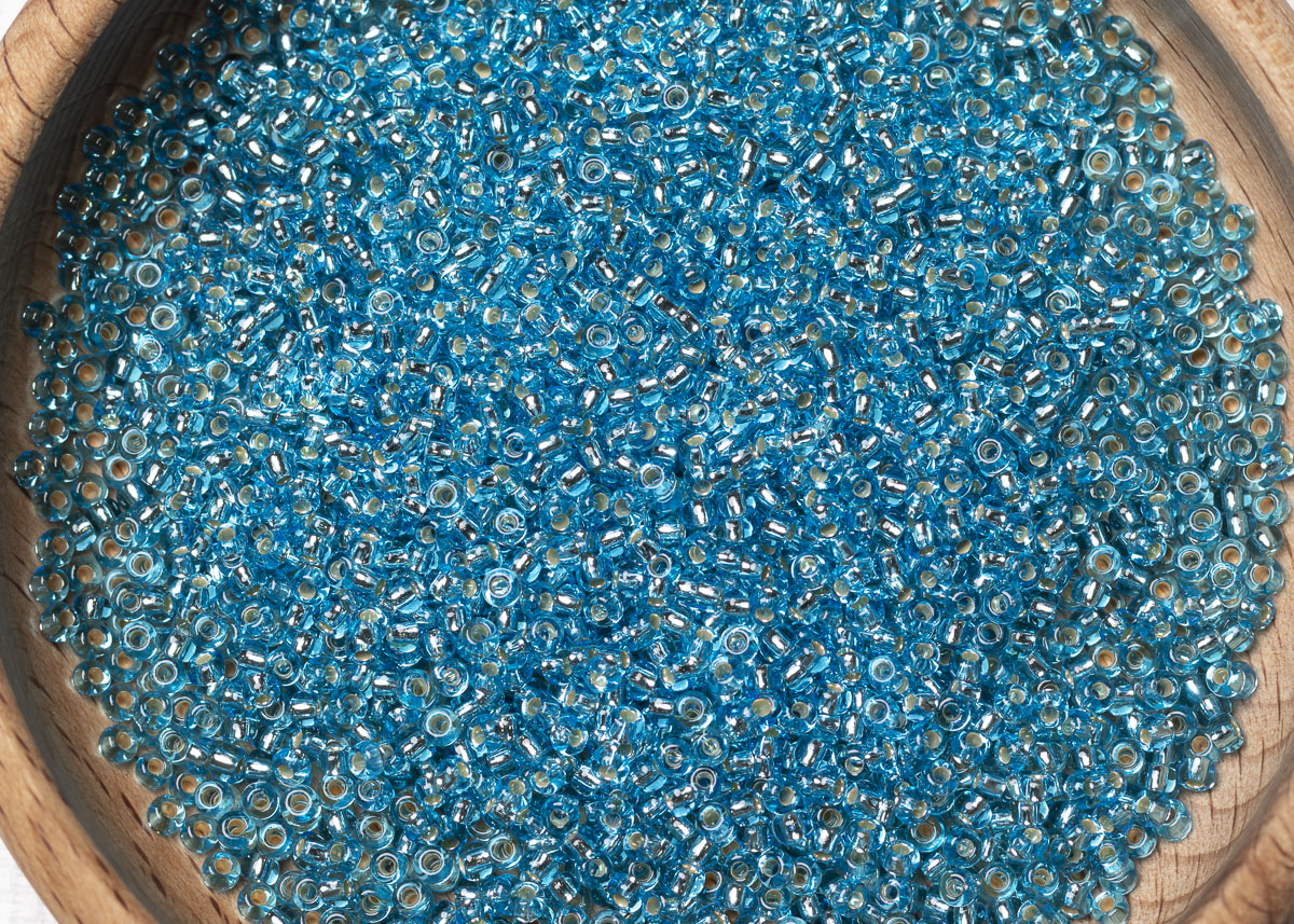 бисер чешский,фирмы "Прециоса", цвет темная бирюза прозрачный с серебряной серединкой, размер 8/0, за 1 упаковку(50 гр).