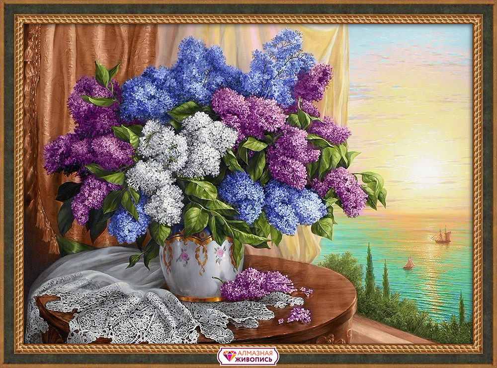 "Алмазная живопись" АЖ-1819 "Сирень у окна" 70 х 50 см