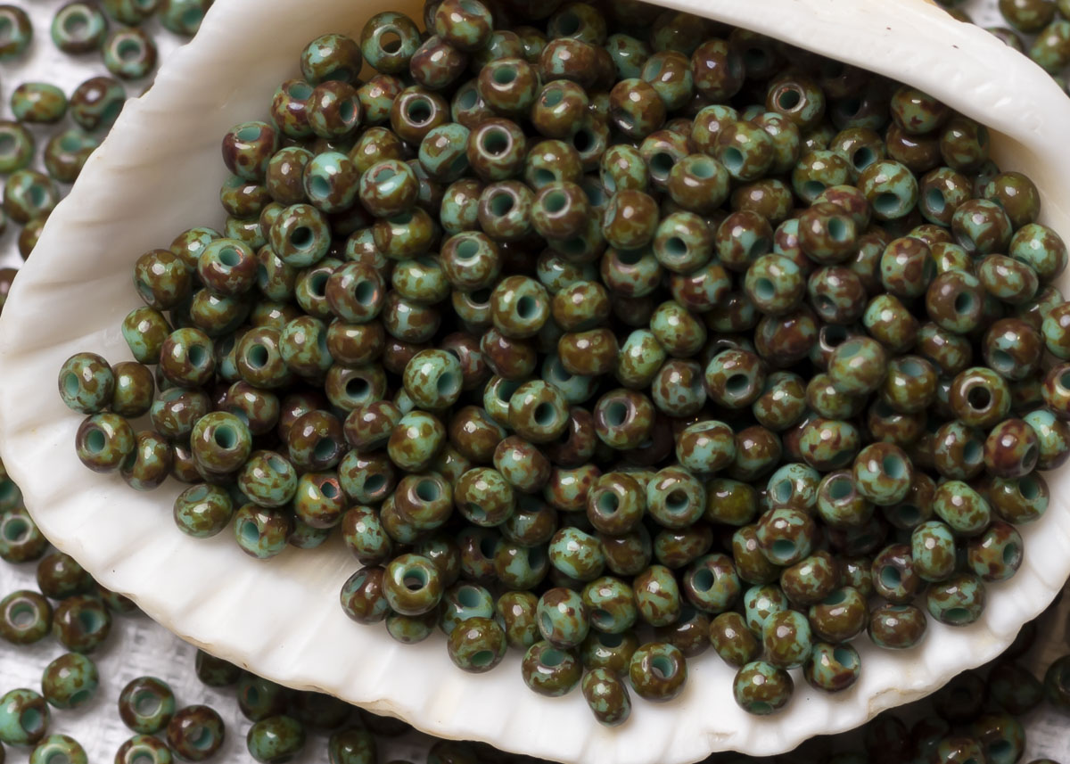 Бисер Чехия круглый 10/0 50г 69130 зеленый травертин