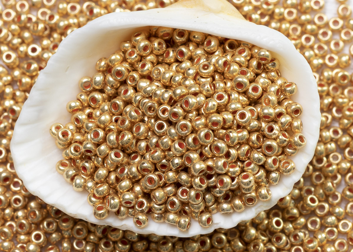 Бисер Чехия круглый 10/0 500г 18583 терра металлик медно-желтый