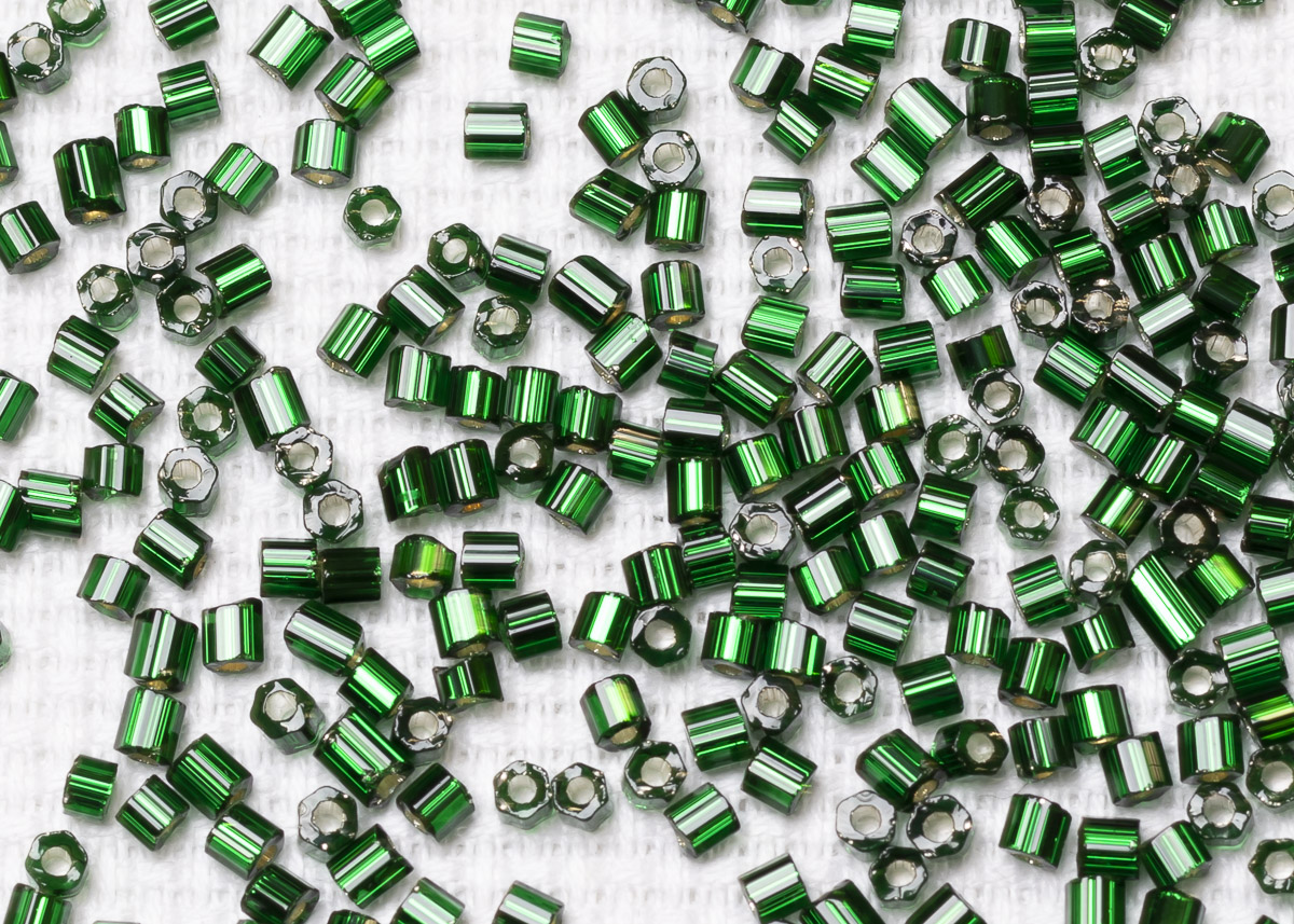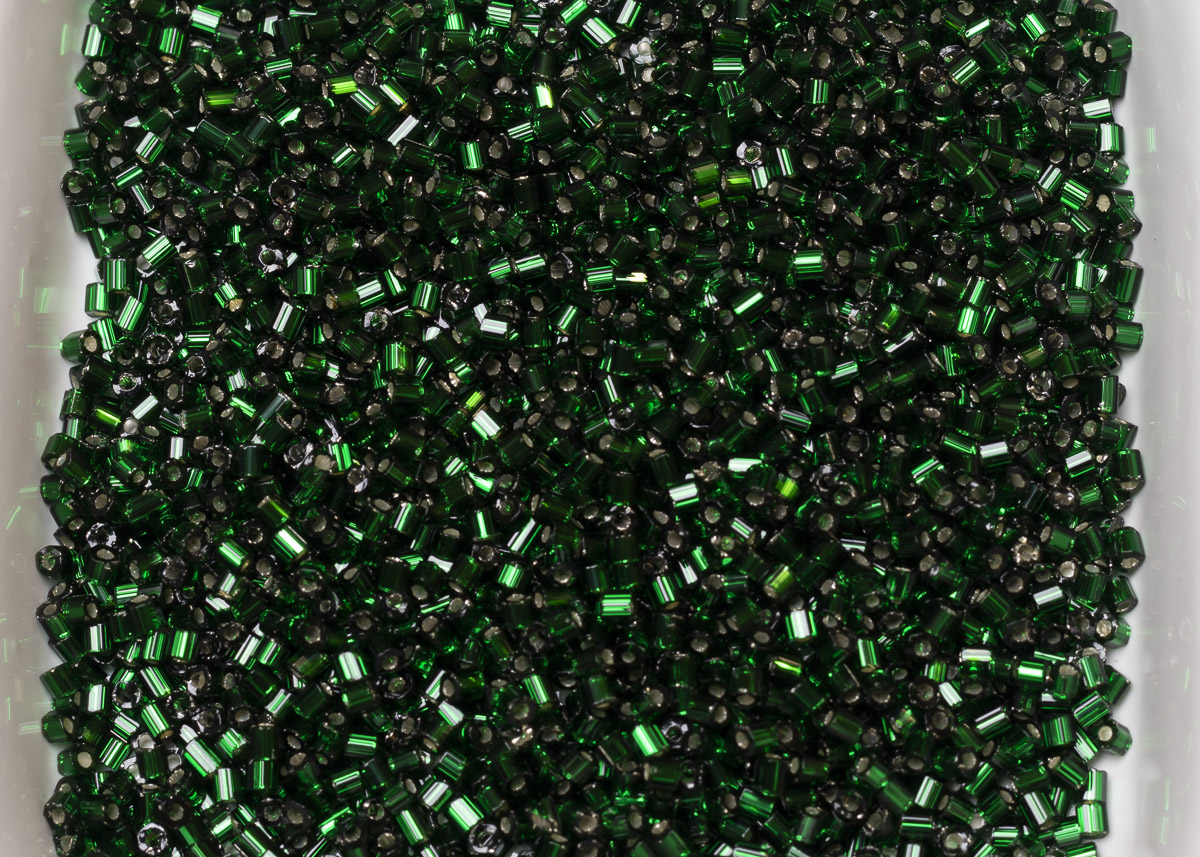 Бисер Чехия рубка 10/0 50г 57150 прозрачный темно-зеленый с серебряным прокрасом