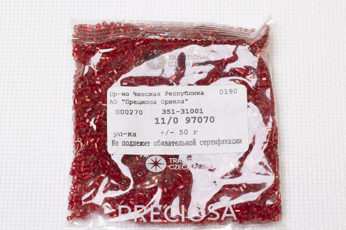 Бисер Чехия рубка 11/0 50г 97070 прозрачный красный с серебряным прокрасом