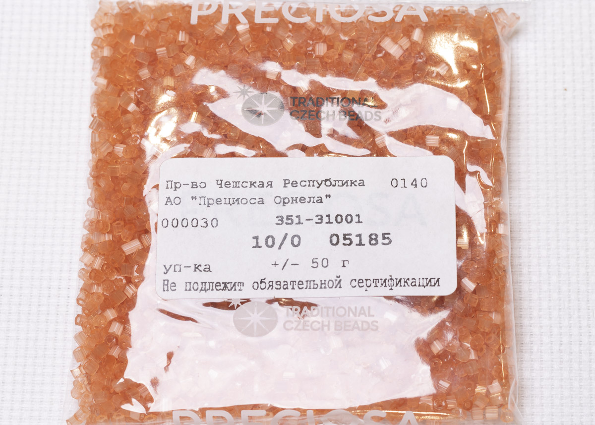 Бисер Чехия сатиновая рубка 10/0 50г 05185 коричнево-оранжевый