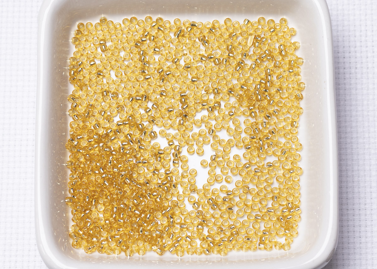Бисер Япония круглый 11/0 10 г PF0022 гальванизированный, светлый топаз, серебряная линия внутри
