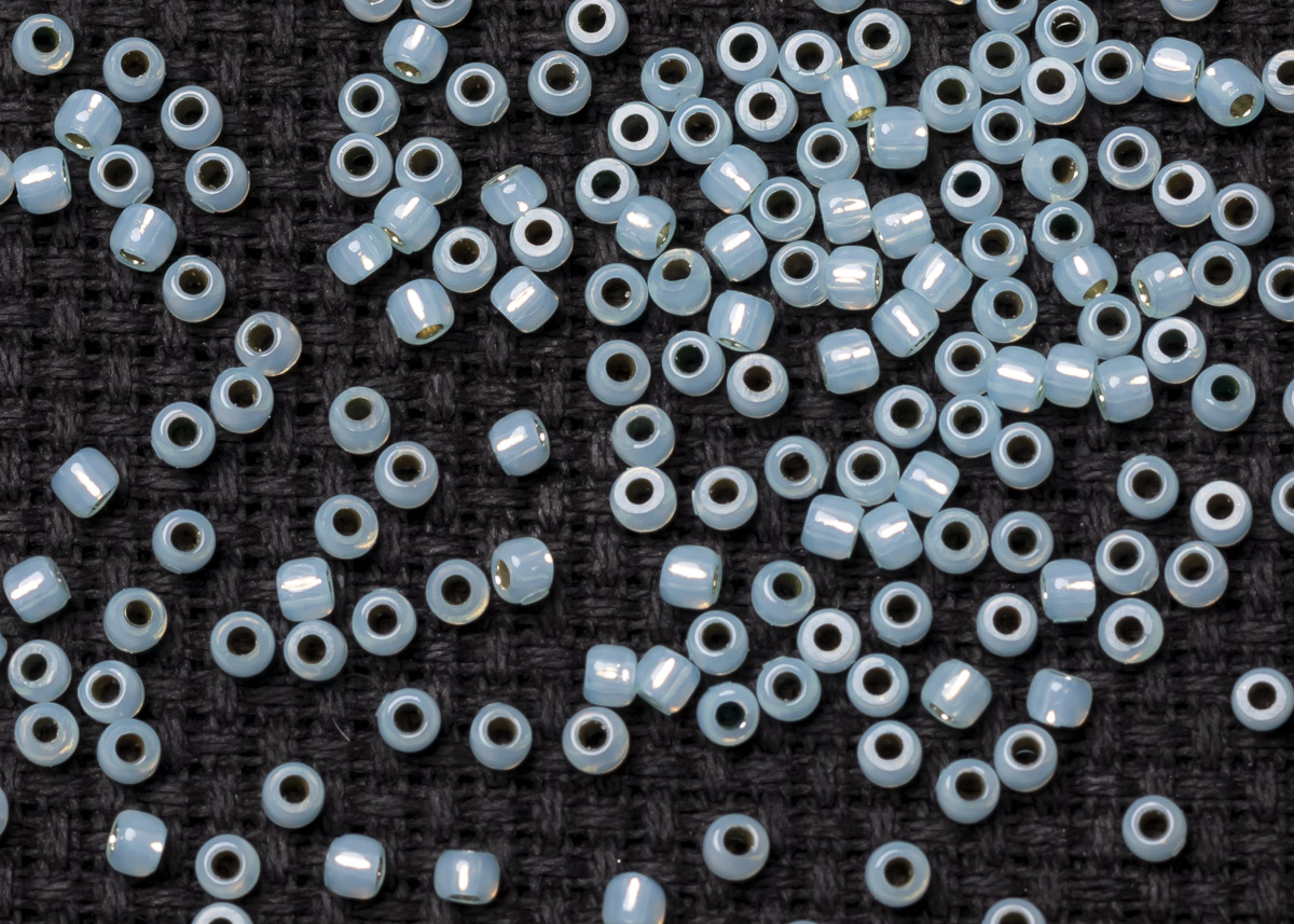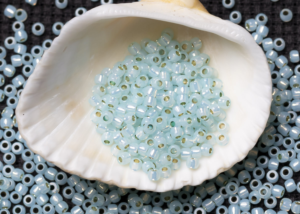 Бисер Япония круглый 11/0 10 г PF2116 молочный светлая вода, серебряная линия внутри