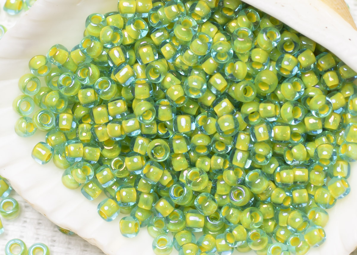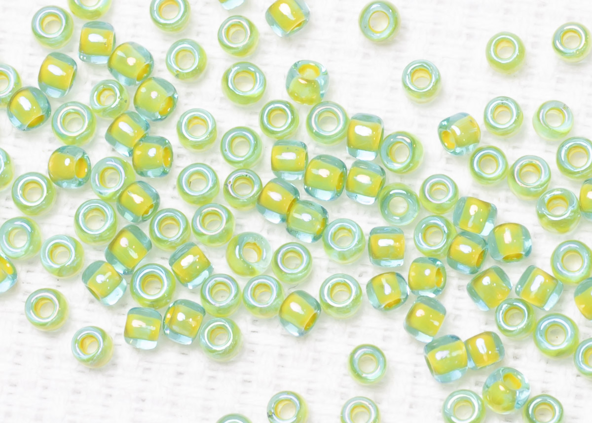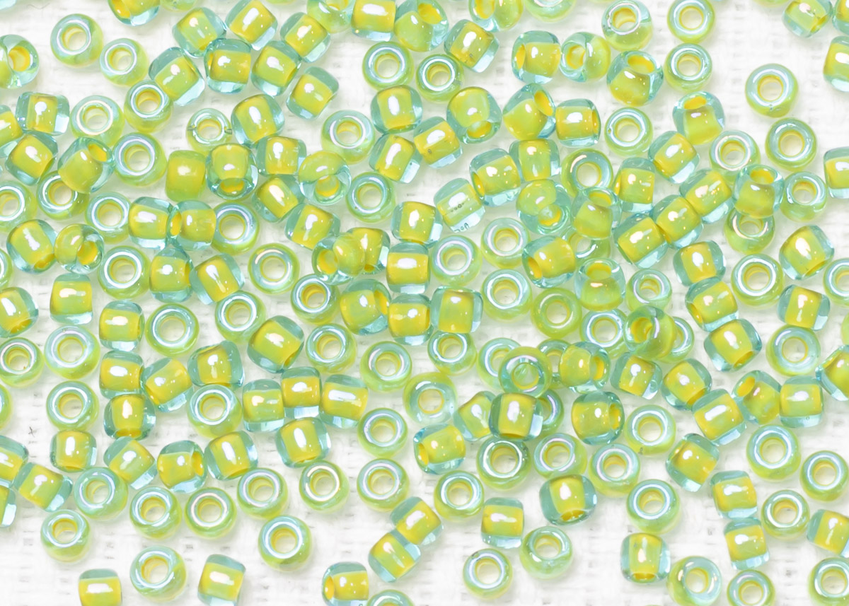 Бисер Япония круглый 11/0 10г 0307 морская вода/желтый, окрашенный изнутри