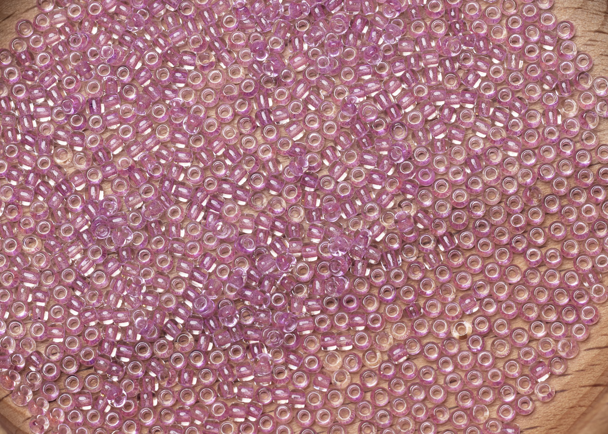 Бисер Япония круглый 11/0 10г 2724 темно-розовый/розово-зеленый, светящийся в темноте