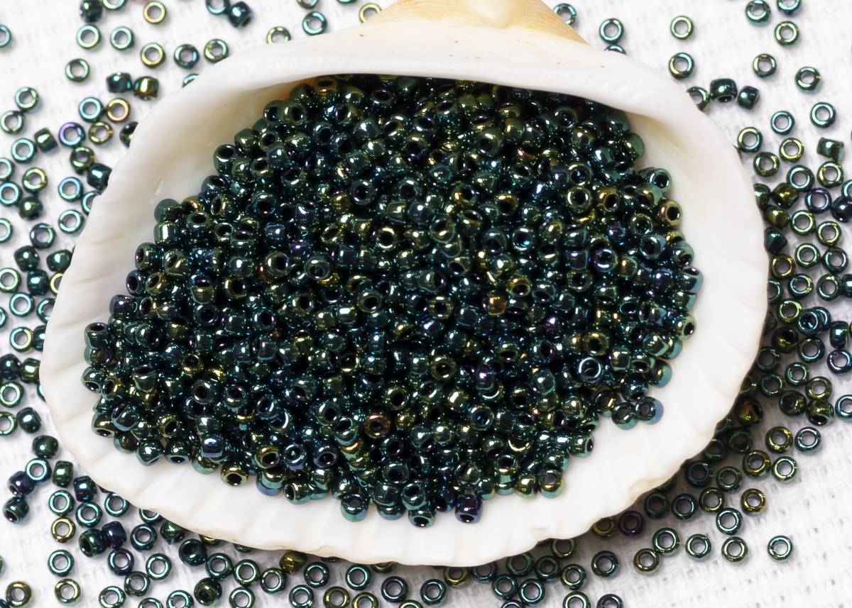 Бисер Япония круглый 15/0 10 г 0506 майский жук ирис, металлизированный золотом