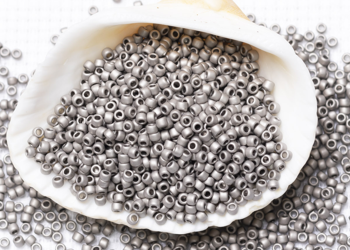 Бисер Япония круглый 15/0 10 г 0566 античное серебро, матовый металлизированный