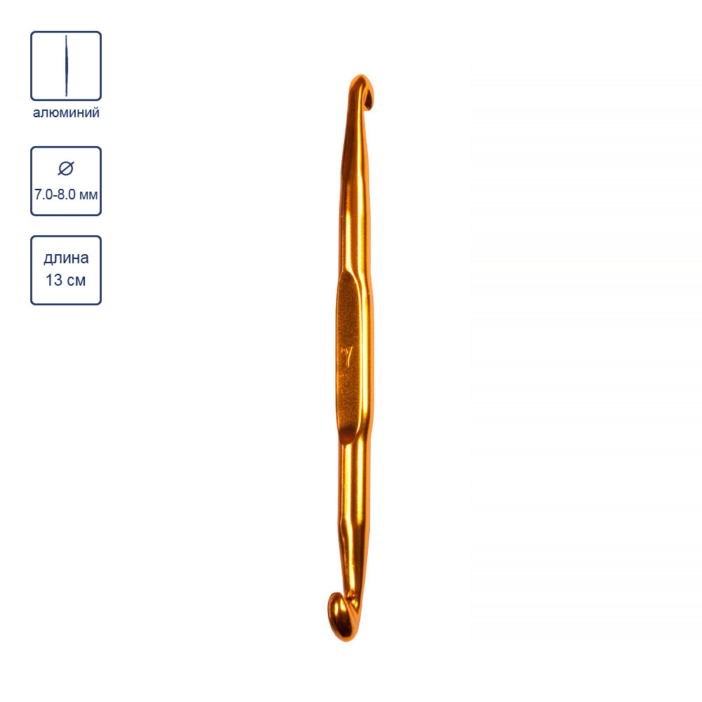Крючки для вязания двухсторонние металлические " Gamma" HD алюминий d 7. 0 - 8. 0 мм 13 см в чехле металлические с анодированным покрытием. Крючки для вязания двухсторонние металлические имеют два крючка на концах различного размера. Они изготовлены из алюминия. Такие крючки используются для создания различных вязаных изделий, от одежды до аксессуаров. Они позволяют вязать с разными размерами петель, что дает возможность создавать разнообразные узоры и текстуры. Двухсторонние крючки часто используются в амигуруми - японской технике вязания игрушек крючком. Они позволяют создавать мягкие и плотные изделия с точными деталями. Такие крючки можно приобрести в специализированных магазинах для рукоделия либо заказать онлайн. Они доступны в разных размерах, поэтому можно выбрать подходящий крючок для конкретного проекта. Крючки, анодированное покрытие защищает крючки от коррозии и мелких царапин, что делает их более долговечными и надежными в использовании. Благодаря этому покрытию, крючки сохраняют свой первоначальный вид и цвет даже после длительного использования. Крючки для вязания металлические с анодированным покрытием - это отличный выбор для тех, кто ценит качество, стиль и долговечность в своих инструментах для вязания. Они помогут вам создавать красивые и уникальные изделия, которые будут радовать вас и окружающих на протяжении долгого времени. Может встречаться товар в обновленной упаковке. Сообщить о неточности в описании