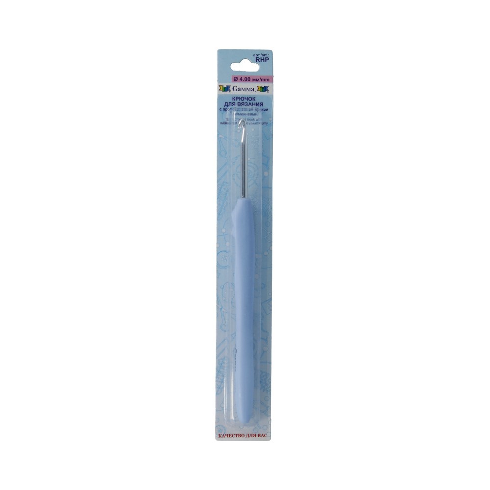 Крючок с прорезиненной ручкой " Gamma" RHP алюминий d 4. 0 мм 16 см в блистере. Алюминиевый крючок Gamma с прорезиненной ручкой - идеальное решение для тех, кто любит вязать, но у кого от обычных крючков быстро устают пальцы и запястья. Крючок легкий и эргономичный. Он удобно располагается в руке и обеспечивает максимальный комфорт при вязании. Мягкая ручка из эластичного прорезиненного материала не выскальзывает из рук, не давит и не образует мозолей на пальцах. А идеальная гладкая головка крючка гарантирует пряже быстрое и легкое скольжение по его поверхности. Крючок для приятных, уютных вечеров, проведенных за любимым занятием. Сообщить о неточности в описании
