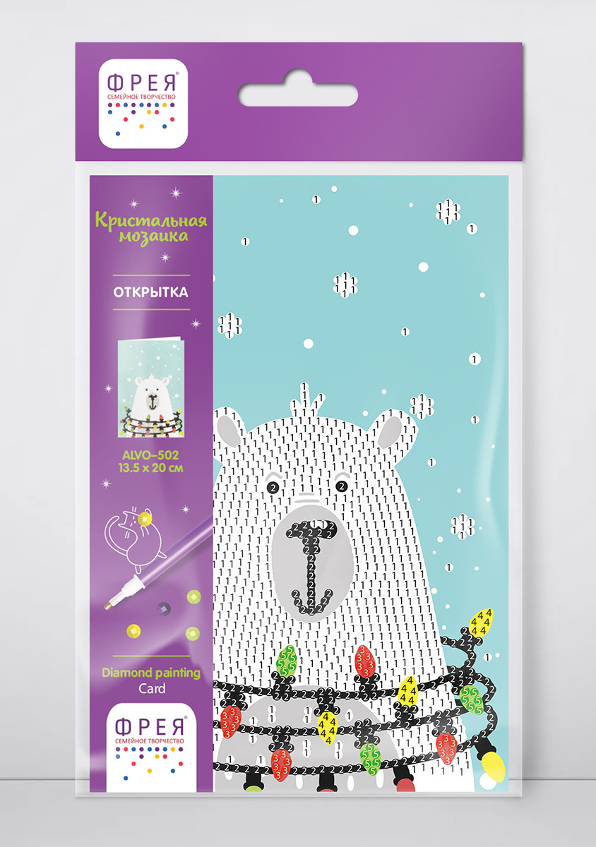 Набор для изготовления открытки в технике " Кристальная/ алмазная мозаика". Выполнение работы не требует специальных навыков, выкладывать картинку очень легко и быстро. Стразы наклеиваются поверх изображения со схемой на уже нанесенный клеевой слой. Увлекательный процесс создания открытки поможет развить мелкую моторику и повысить концентрацию внимания. Готовая работа станет замечательным подарком близкому человеку! В набор ТМ ФРЕЯ " Кристальная мозаика" входит:- основа открытки с клеевым слоем и защитной плёнкой,- стилус с восковой подушечкой,- круглые стразы с запасом более 30%,- картонный лоток,- инструкция. Количество цветов: 5Тип выкладки: частичнаяУровень сложности: 1 из 3Размер готового изделия: 20 х 13. 5 смРазмер упаковки: 14. 3 х 25 смНабор сертифицирован для детского творчества. Сообщить о неточности в описании