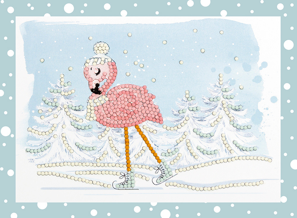 Кристальная ( алмазная) мозаика " ФРЕЯ" ALVS- 040 мини- картинка " Фламинго на коньках" 19. 5 х 14 см