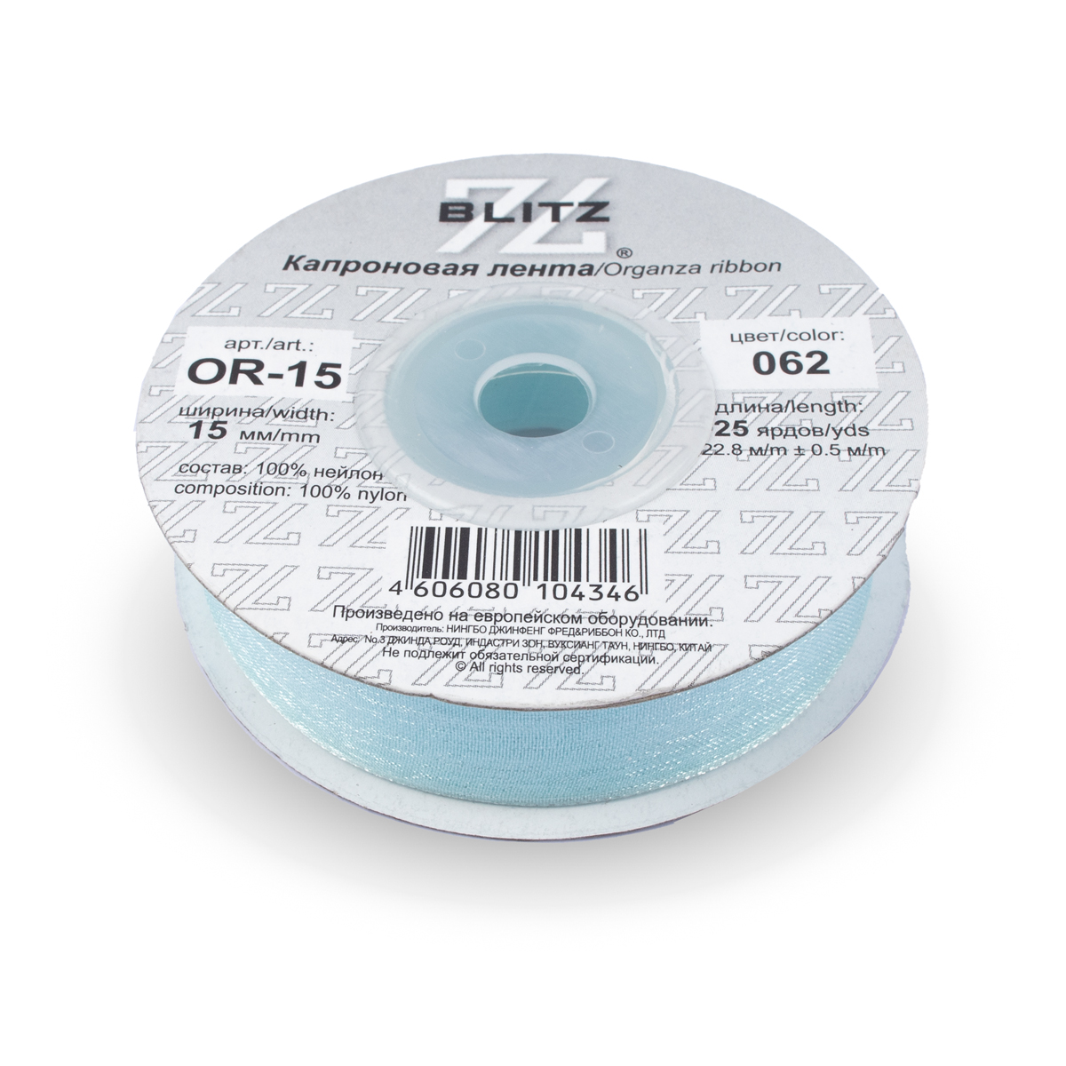 лента 15 мм OR-15 BLITZ 22.8 м ±0.5 м №062 бл.голубой