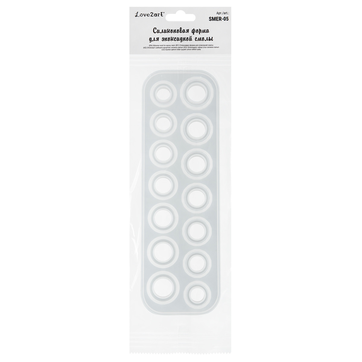 Силиконовая форма арт. SMER- 05 используется для создания колец из эпоксидной смолы. Форма многоразовая. У колец на форме два вида граней - гладкая и рельефная. Размер: 8. 2 * 25. 7 смСообщить о неточности в описании