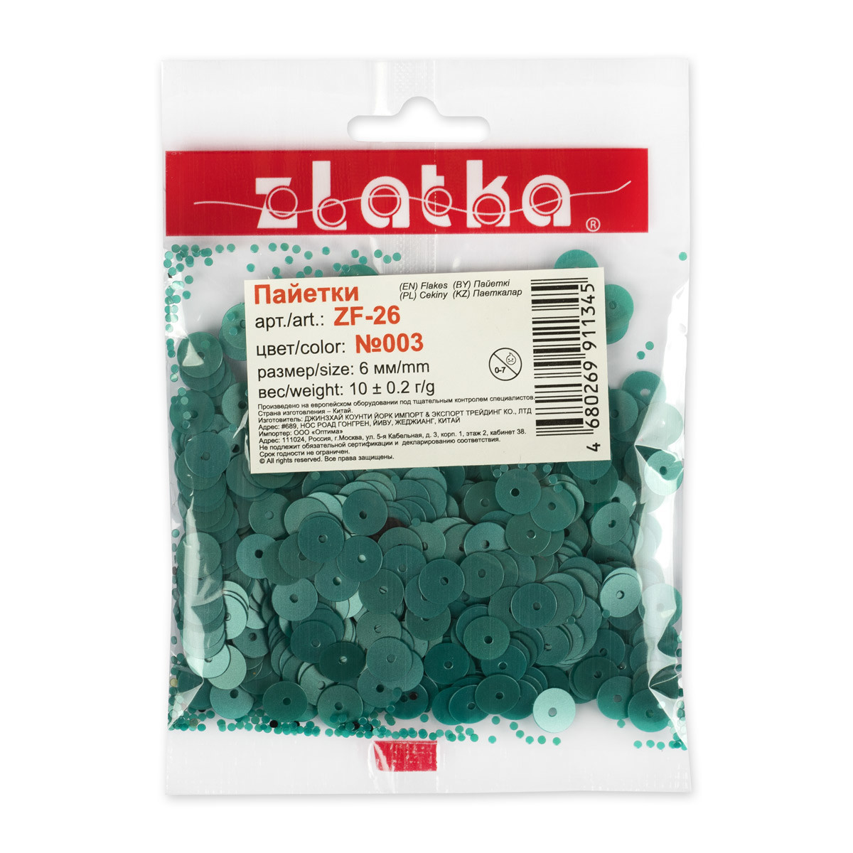Пайетки россыпью " Zlatka" ZF- 26 плоские круглые с отверстием по центру. Пайетки с матовым эффектом. Используются как элемент украшения или дизайна одежды, обуви, сумок, кошельков и бижутерии. Может использоваться для люневильской техники вышивания. Также пайетки используютсядля декоративной отделки интерьера, подарочных коробок, пакетов, цветов, а точнее их букетов и пр. Диаметр: 6ммПоверхность пайеток не рекомендуется гладить и подвергать механическому воздействию. Сообщить о неточности в описании