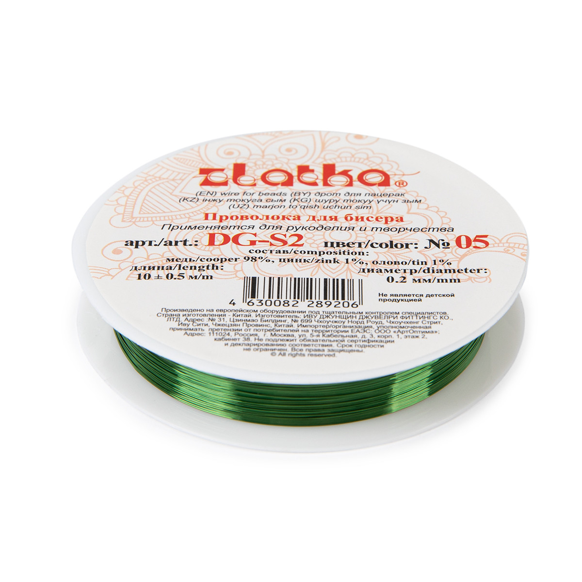 " Zlatka" / " Gamma" Проволока для бисера DG- S2 d 0. 2 мм 10 м №05 зеленый