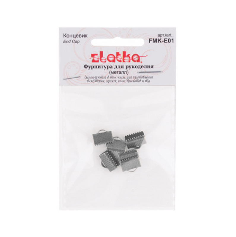 Концевик " Zlatka" FMK- E01 используются для профессионального аккуратного завершения бус, колье или браслетов. Они позволяют подготовить концы украшения к присоединению застежки. Обжимные концевики универсальны и удобны в использовании. Они зажимаются с помощью инструментов, а к петельке концевика присоединяется застежка напрямую или при помощи соединительного колечка. Тщательно зажимайте концевик, чтобы крепление получилось надежным. Длина: 10 мм, Ширина: 7 мм, Толщина: 2 мм, Отверстие 2 мм. Состав: 100% железо. Использование качественной фурнитуры играет очень важную рольпри изготовлении бижутерии. От правильного выбора подвески, коннектора, замка или любой другой связующей части зависит целостность готового изделия. Сообщить о неточности в описании