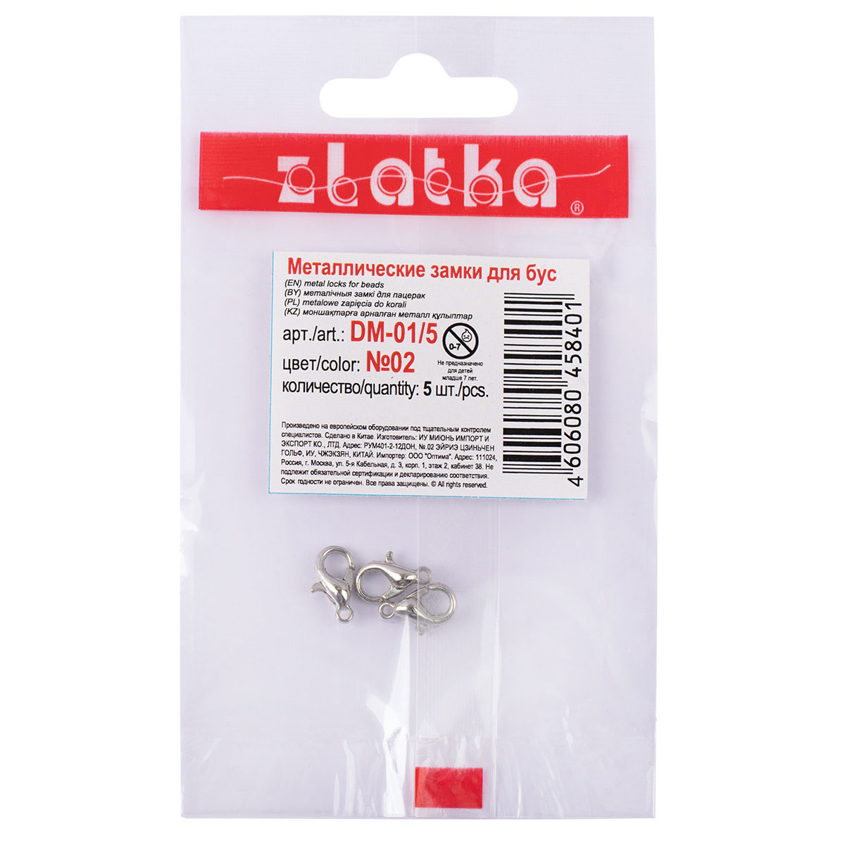 " Zlatka" Замок для бус " карабин" малый DM- 01/ 5 10 мм 5 шт №02 под никель