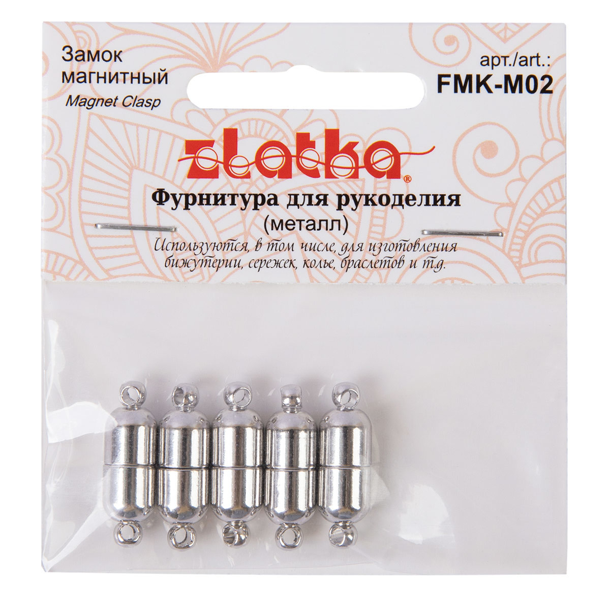 Замок магнитный " Zlatka" FMK- M02 - это вид фурнитуры для бижутерии, используемой для застегивания браслетов, бус и колье. Магнитные застежки состоят из двух элементов, магнитящихся друг к другу. Элегантное решение для браслета или колье - смотрятся очень аккуратно и легко расстегиваются. Не рекомендуется использовать магнитные застежки для тяжелых украшений, так как под весом украшения застежка может самопроизвольно расстегнуться. Использование качественной фурнитуры играет очень важную роль при изготовлении бижутерии. От правильного выбора подвески, коннектора, замка или любой другой связующей части зависит целостность готового изделия. Размер 6х17 мм. Диаметр отверстия ушка 1. 5 мм. Состав: латунь. Не содержит никель и свинец. Сообщить о неточности в описании